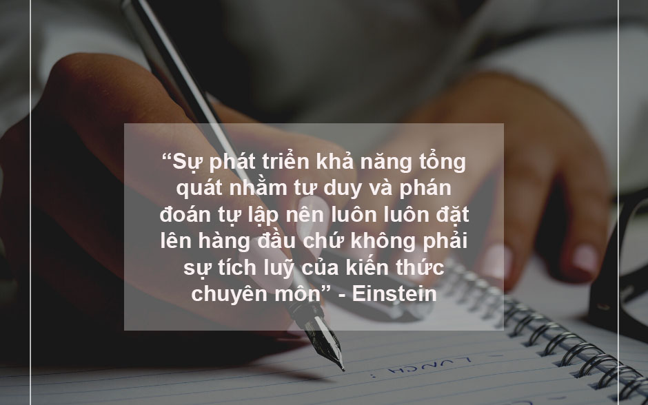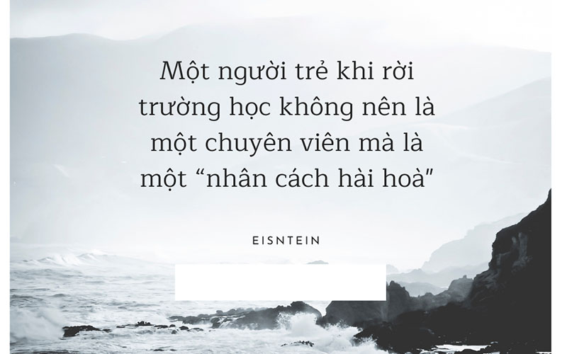 Điều làm mình thích thú chính là quan niệm của Eistein về nền giáo dục khai phóng, một triết lý giáo dục còn khá mới mẻ tại thị trường Nha Trang. Theo Eistein, điều cốt yếu của giáo dục không chỉ dừng là dạy người ta ngành chuyên môn mà cần giúp sinh viên có cảm giác sinh động về đạo đức, về mục tiêu lý tưởng sống để phấn đấu thay vì huấn luyện khắc nghiệt nhồi nhét kiến thức; học nhưng không phải để tư duy, sáng tạo, học không phải để hiểu. “Sự chuyên nghiệp hoá quá mức trong đào tạo khiến con người thành cỗ máy có thể làm được việc ngay nhưng lại rất dễ bị thay thế